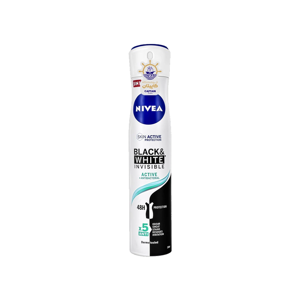 اسپری ضد تعریق زنانه نیوا مدل نامرئی اکتیو آنتی باکتریال – Nivea Black & White Invisible Original