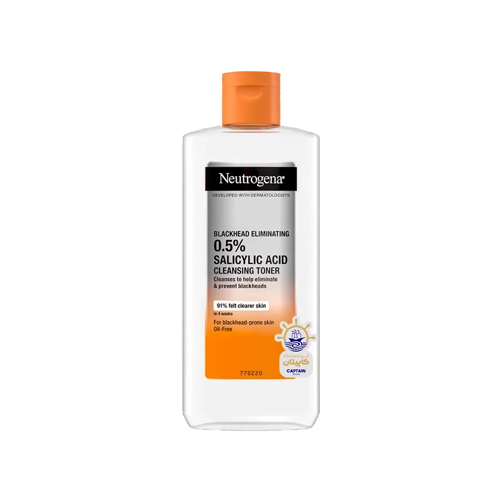 Neutrogena Blackhead Eliminating 0.5% Salicylic Acid Cleansing Toner 200mlتونر پاک کننده صورت نوتروژینا مدل ضد جوش سرسیاه با ۰.۵٪ سالیسیلیک اسید محصولی تخصصی برای مقابله با جوشها و سرسیاههای پوست است.