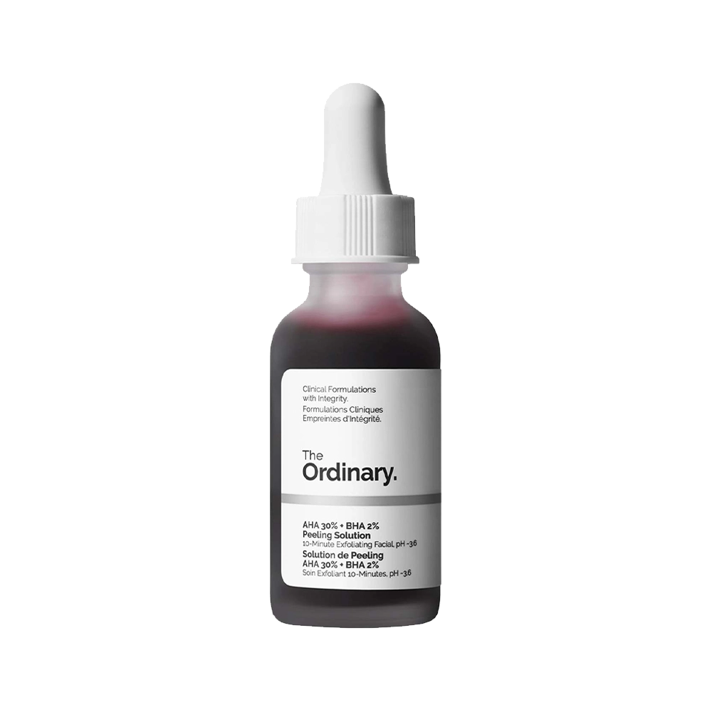The Ordinary AHA 30% + BHA 2% Peeling Solution 30mlسرم پیلینگ آ اچ آ و بی اچ آ اوردینری ۳۰ میلی لیتر با ترکیبی قوی از اسیدهای آلفا هیدروکسی و بتا هیدروکسی، لایهبرداری عمیق پوست را انجام میدهد.
