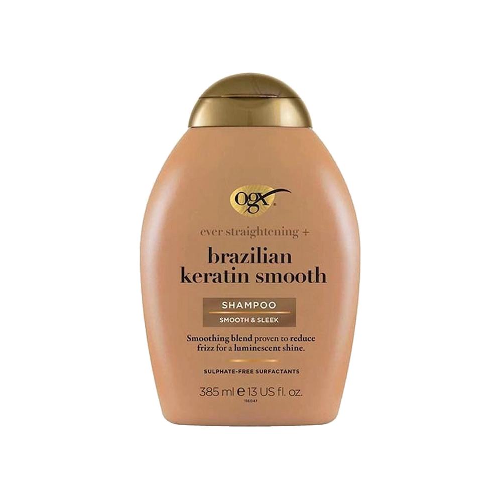 OGX Ever Straightening+ Brazilian Keratin Smooth 385mlشامپوی مو اوجی ایکس صاف کننده فوقالعاده با کراتین برزیلی ۳۸۵ میلی لیتر با فرمولاسیونی مغذی و تقویتکننده، موها را از آلودگی و چربی پاک میکند.