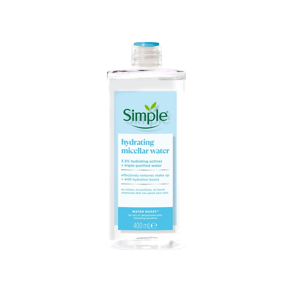 Simple Hydrating Micellar Water 400mlمیسلار واتر سیمپل آبرسان ۴۰۰ میلی لیتر یک محصول ملایم و مؤثر برای پاکسازی روزانه پوست است که بدون نیاز به شستشو، تمام آلودگیها، چربی اضافه و حتی آرایشهای سبک را از سطح پوست پاک میکند.