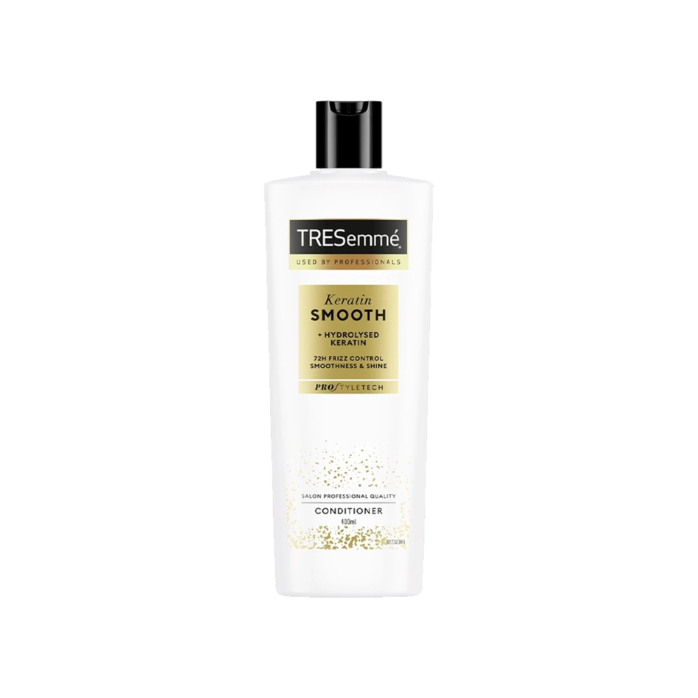 TRESemmé Keratin Smooth Conditioner 400mlنرم کننده مو ترزمه مدل کراتین اسموت ۴۰۰ میلی لیتر با فرمولاسیونی غنی از کراتین، موها را تقویت و از شکنندگی جلوگیری میکند.